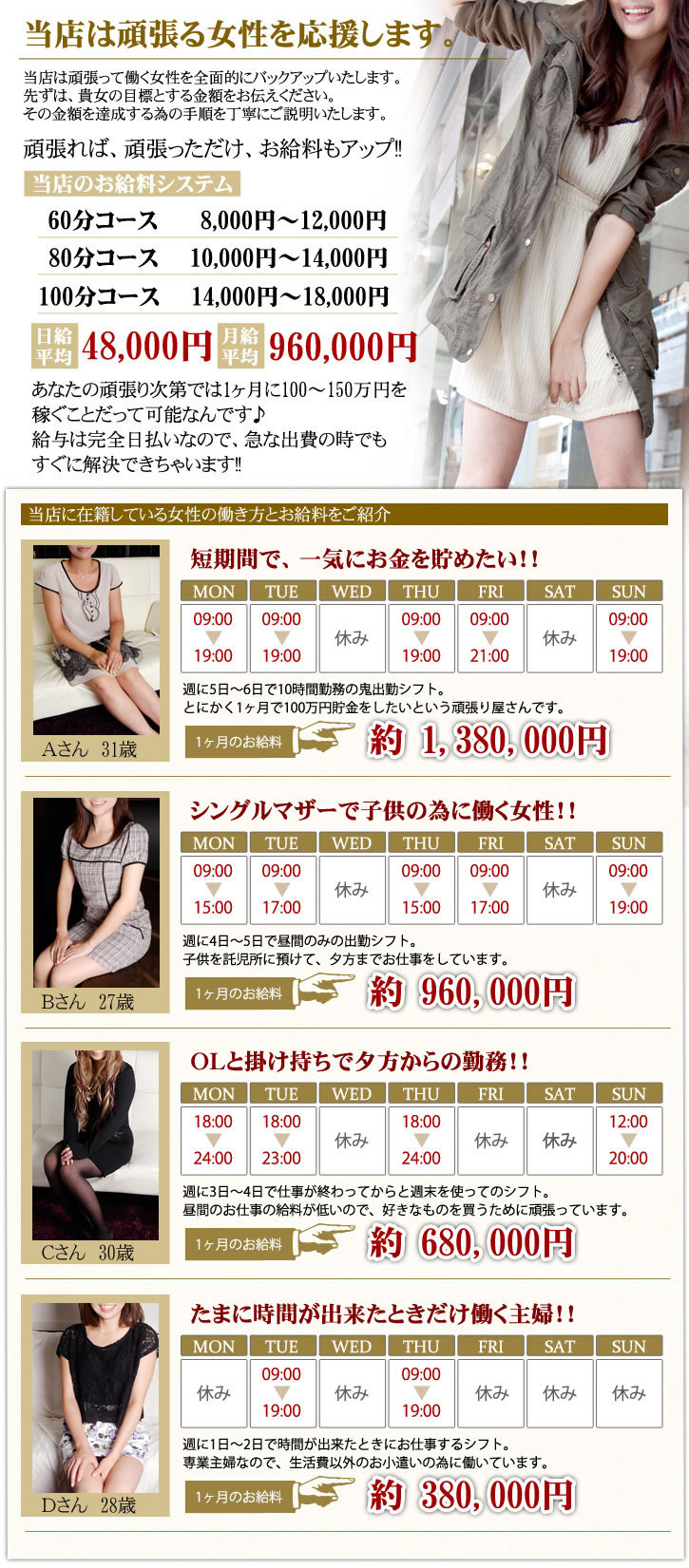 トップページ|お仕事の内容|お給料について|待遇について|入店までの流れ|よくある質問|応募フォーム